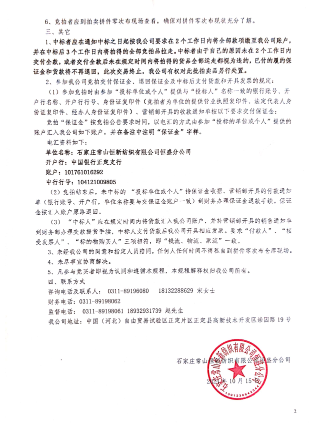 石家莊常山恒新紡織有限公司恒盛分公司 拼件零次布-190 窄幅拍賣公告